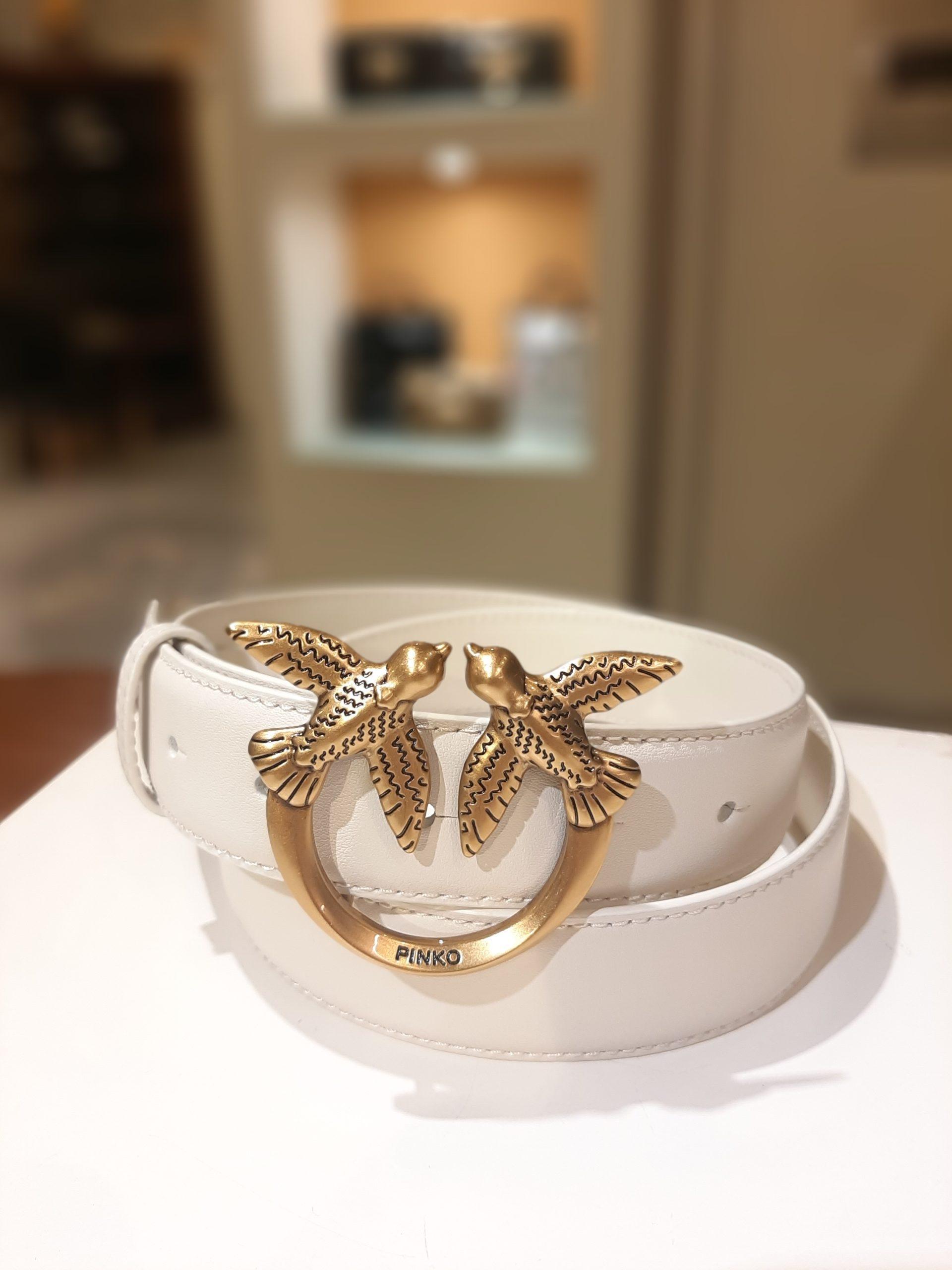 Cintura in morbida pelle mano seta con fibbia Love Birds Diamond Cut in metallo.