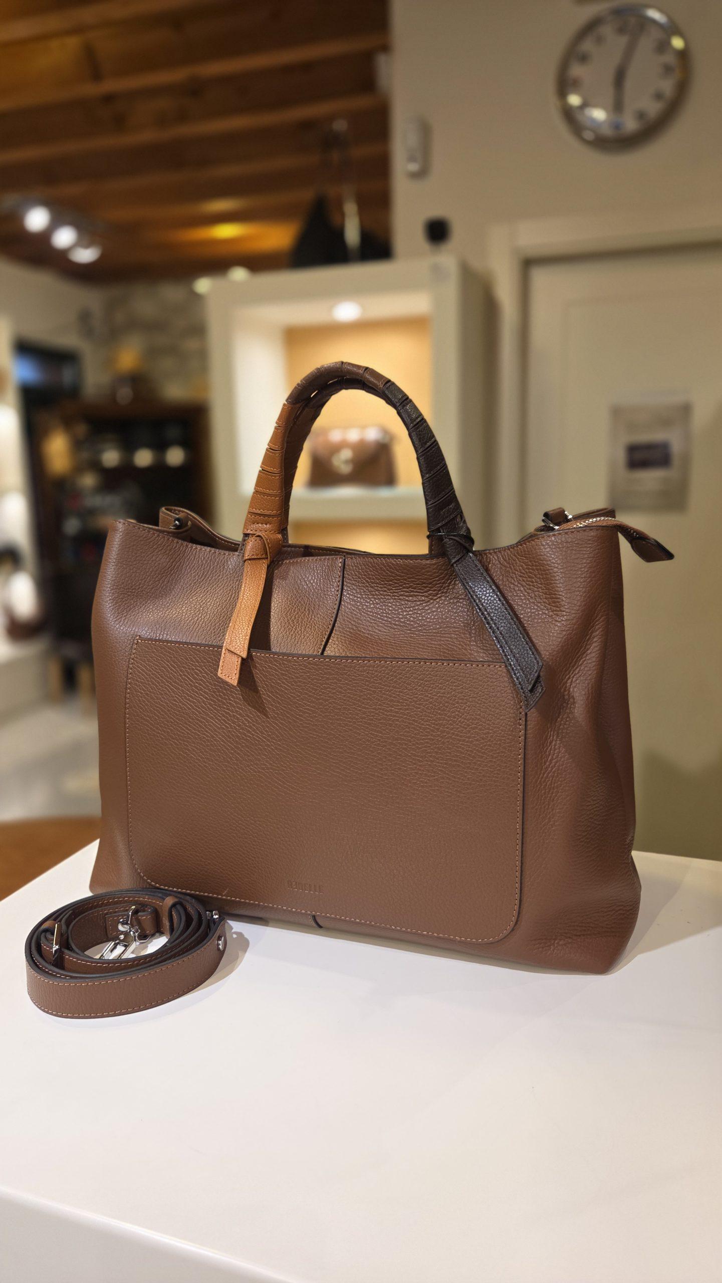 VIDALIA BIG, fa parte della LINEA COUNTRY SIDE ed è l’alleata perfetta per la donna che desidera unire capienza, organizzazione ed un design di forte impatto. VIDALIA BIG offre il massimo: spazio generoso per trasportare comodamente laptop, documenti e tutti gli essenziali per una giornata intensa; manici unici, avvolti in fasce di pelle bicolore a contrasto che definiscono un look moderno e grintoso; l’interno spazioso e la tasca esterna a busta garantiscono ordine e praticità. Perfetta come borsa da lavoro o per il tempo libero grazie al suo volume e alla sua eleganza strutturata.