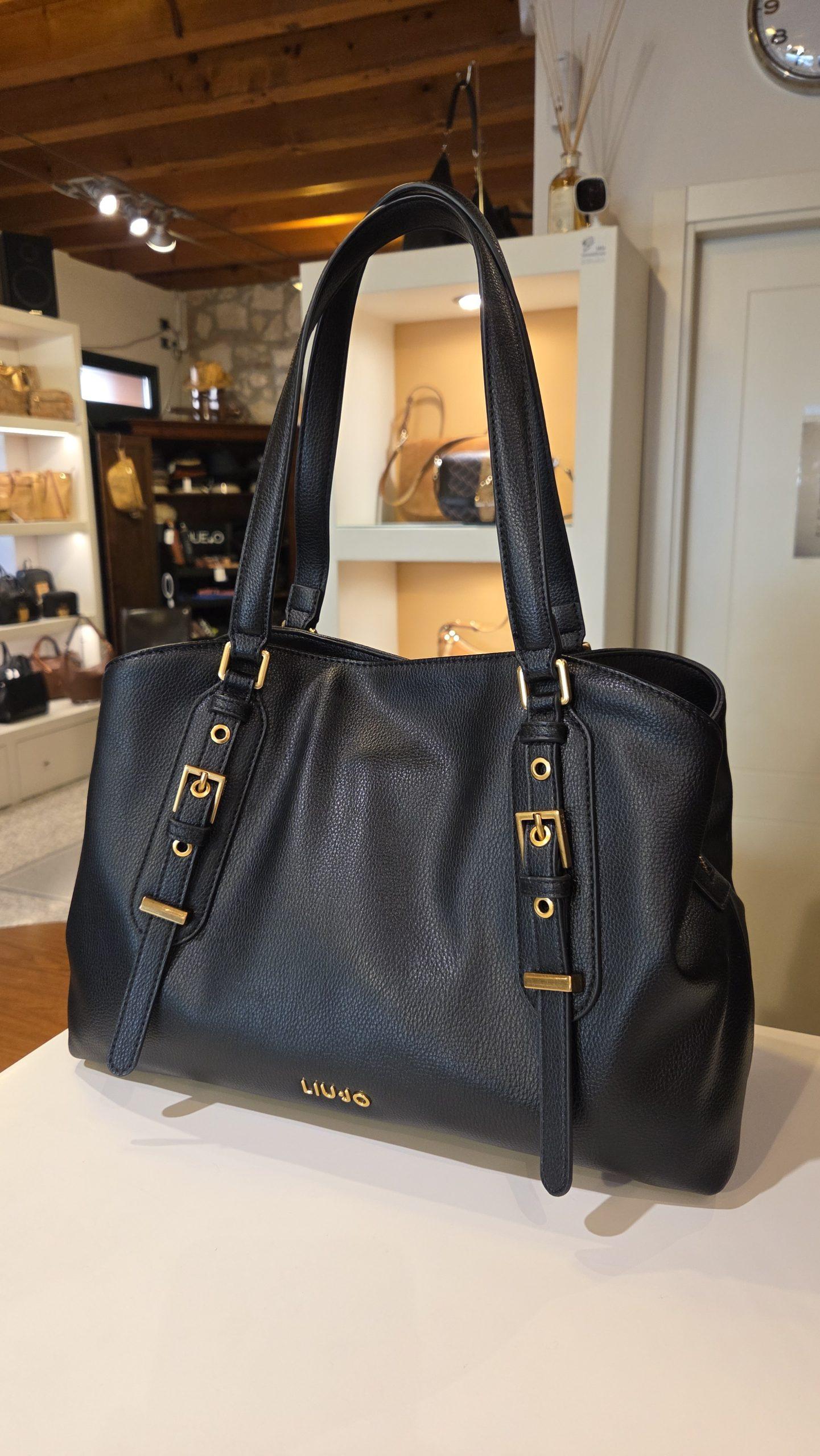 Questa borsa Liu Jo è un accessorio elegante e versatile, perfetto per completare look casual o più sofisticati. Realizzata in pelle sintetica di alta qualità, presenta una chiusura a calamita e dettagli in metallo con finitura oro lucido, conferendo stile e raffinatezza.
