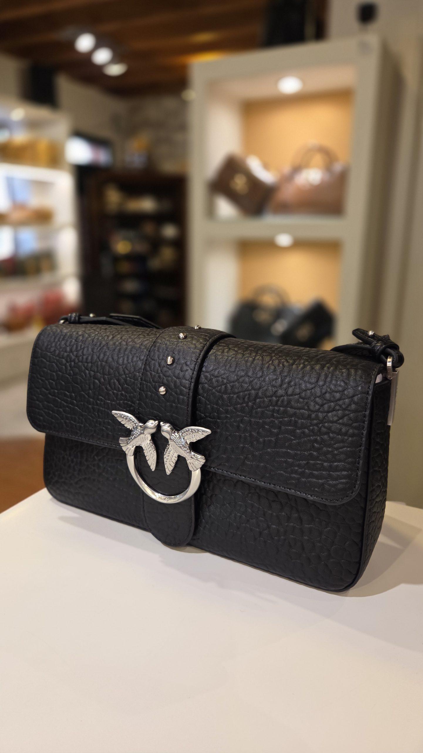 Borsa a spalla classica Love Bag Slouchy, dalla forma rettangolare allungata e morbida, senza strutture rigide. La chiusura della borsa è personalizzata con la fibbia Love Birds Diamond Cut in metallo, galvanica antique gold, dove l’iconico logo uccellini è protagonista del design della borsa. La borsa da giorno è completa di spallaccio in pelle, regolabile con fibbia, per portare la borsa a spalla e di tracolla a catena con spallaccio in pelle, per personalizzare la borsa a seconda delle necessità. Per un tocco di stile in più, soprattutto nelle occasioni speciali, puoi portare la borsa morbida anche a mano. La borsa è foderata in tessuto drill di cotone, e include anche una pratica tasca a parete in pelle. La Love Bag Slouchy è la versione più contemporanea e al passo con i trend attuali della nostra classica borsa iconica. Attiva la tua borsa PINKO: verifica l’autenticità del tuo prodotto e accedi all’esperienza personalizzata avvicinando il tuo smartphone al ricamo Love Birds che trovi sul retro della borsa!