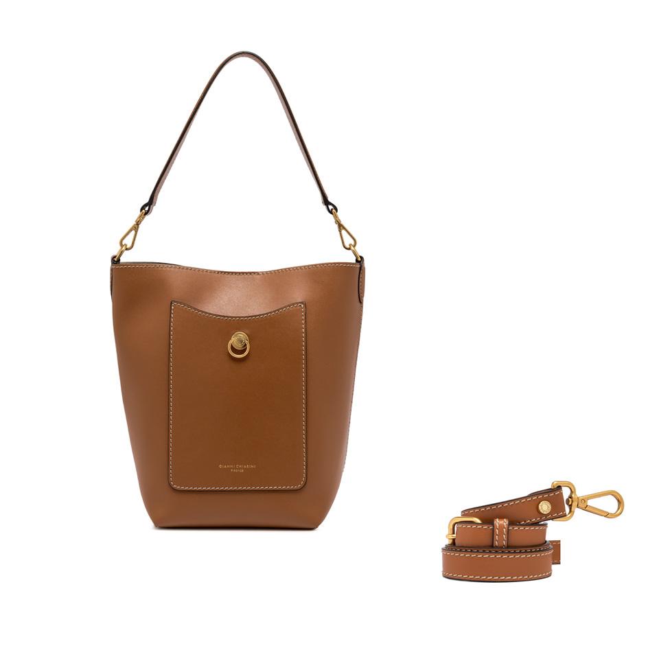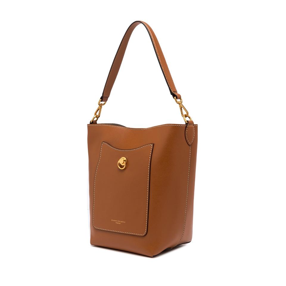 Rubina è la nuova linea by Gianni Chiarini Firenze con la sua shape a secchiello è l’accessorio ideale per una donna fashion. Realizzata in pelle liscia dall’aspetto naturale. Caratterizzata da molteplici portabilità: handle, shoulder e crossbody, grazie alla tracolla e al pratico manico di cui è dotata. Chiusura con bottone a pressione. Impreziosita dalla tasca piatta sul fonte e dal dettaglio piercing con anellino decorativo.