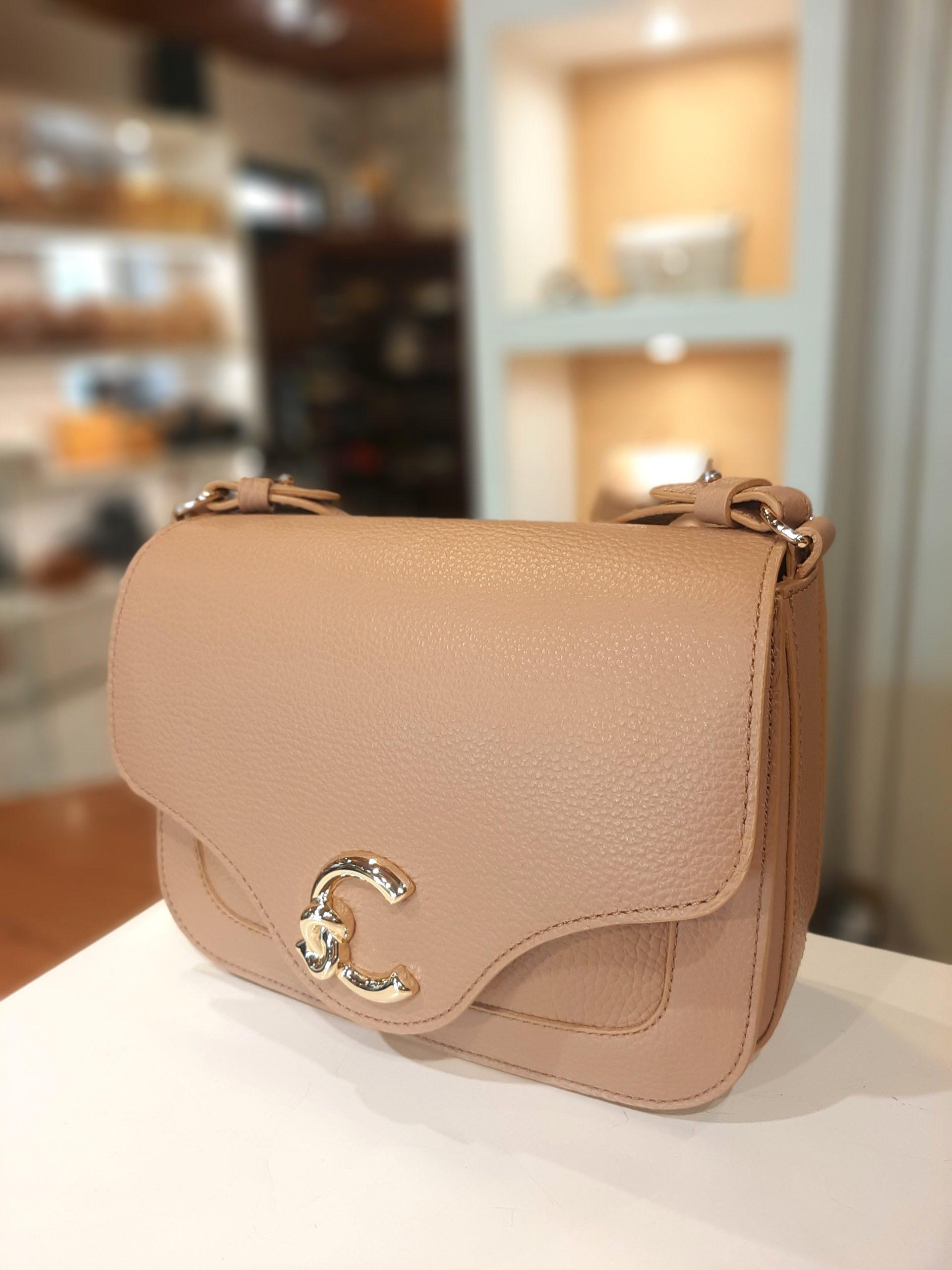 Una nuova signature entra a far parte del brand, Coccinelle C-Me. Il logo reinterpretato attraverso la C di Coccinelle che si annoda e abbraccia il plettro, elemento iconico del brand, un’unione che si intreccia con la vita di una donna tra passato e presente. Le linee geometriche e le curve sofisticate rafforzano il design, mentre la costruzione a soffietti aggiunge un tocco di funzionalità e delicata eleganza a questa borsa che vuole essere la compagna essenziale della donna Coccinelle durante la sua giornata. Questo modello è realizzato in pelle lavorata tramite specifici macchinari e poi bottalata al fine di mantenerne la morbidezza. È una pelle molto resistente che si presta a una facile pulizia, ideale per un uso quotidiano.