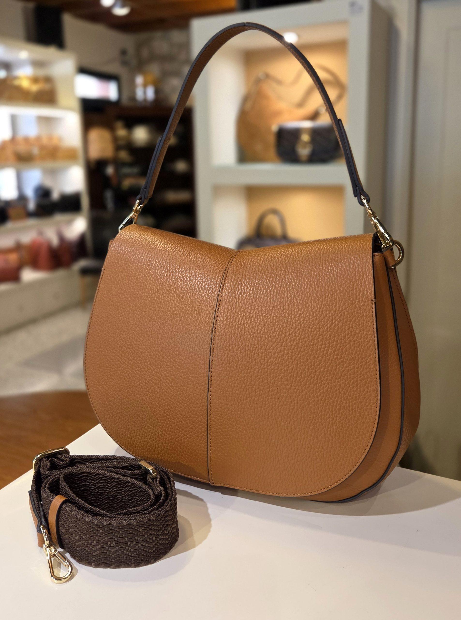 L’iconica Helena Round di Gianni Chiarini Firenze, in pelle martellata, si distingue per il suo design strutturato dall’appeal contemporaneo. Versatile e funzionale, è dotata di una tracolla per una doppia portabilità e offre un’organizzazione impeccabile grazie al doppio compartimento interno e alla tasca a scomparsa sul retro.