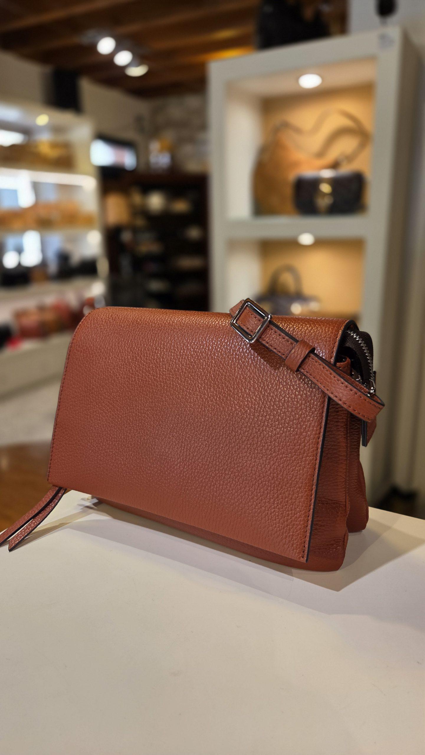 Da portare a mano o con la sottile tracolla in pelle la borsa Three Gianni Chiarini è realizzata in pregiata pelle martellata. Giovane e divertente è composta da tre bustine che convergono nella parte superiore nel dettaglio della zip a contrasto. Da portare con gli outfit più casual ma anche per una serata elegante per impreziosire un look semplice e monocolore.