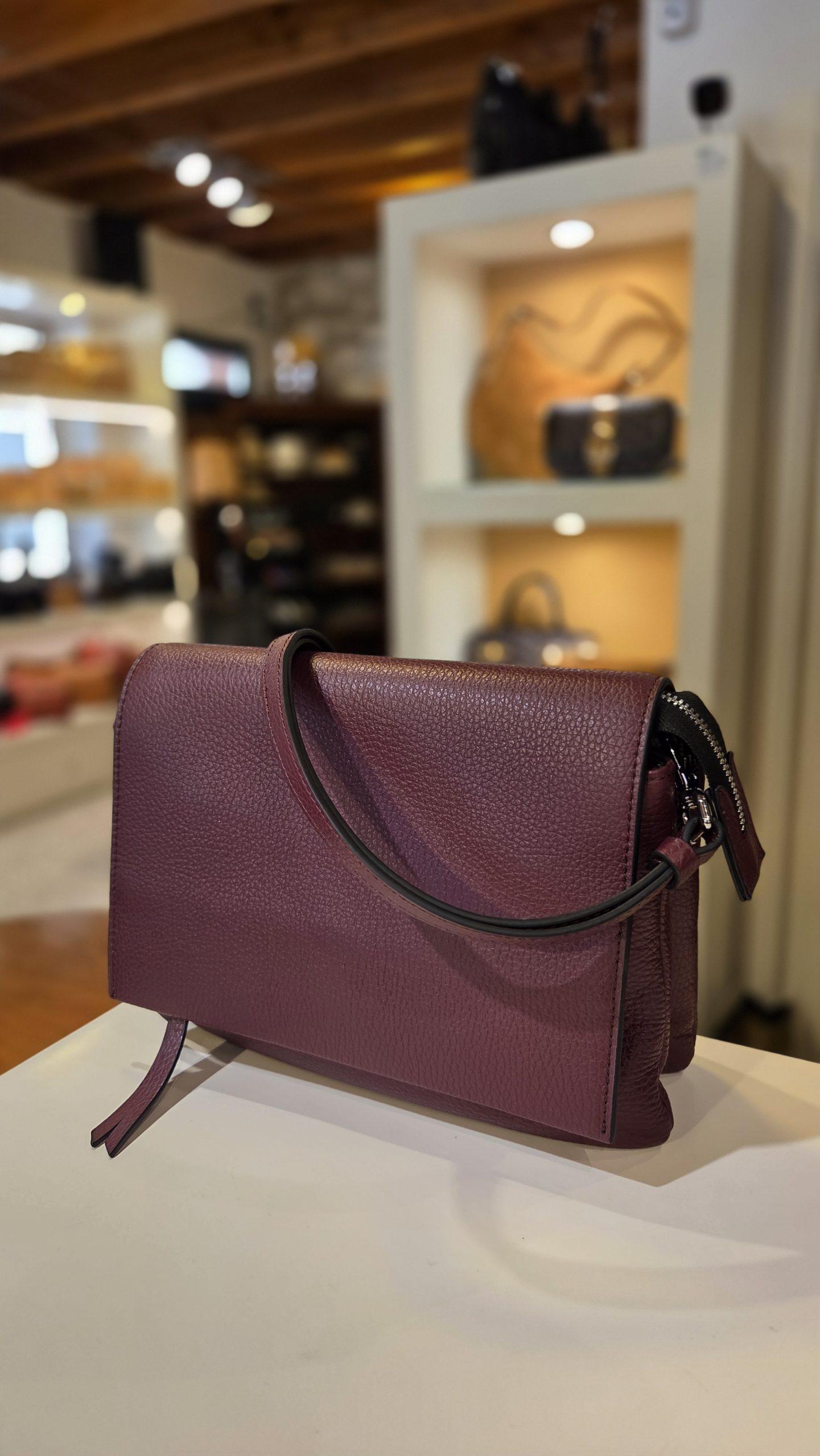 Da portare a mano o con la sottile tracolla in pelle la borsa Three Gianni Chiarini è realizzata in pregiata pelle martellata. Giovane e divertente è composta da tre bustine che convergono nella parte superiore nel dettaglio della zip a contrasto. Da portare con gli outfit più casual ma anche per una serata elegante per impreziosire un look semplice e monocolore.