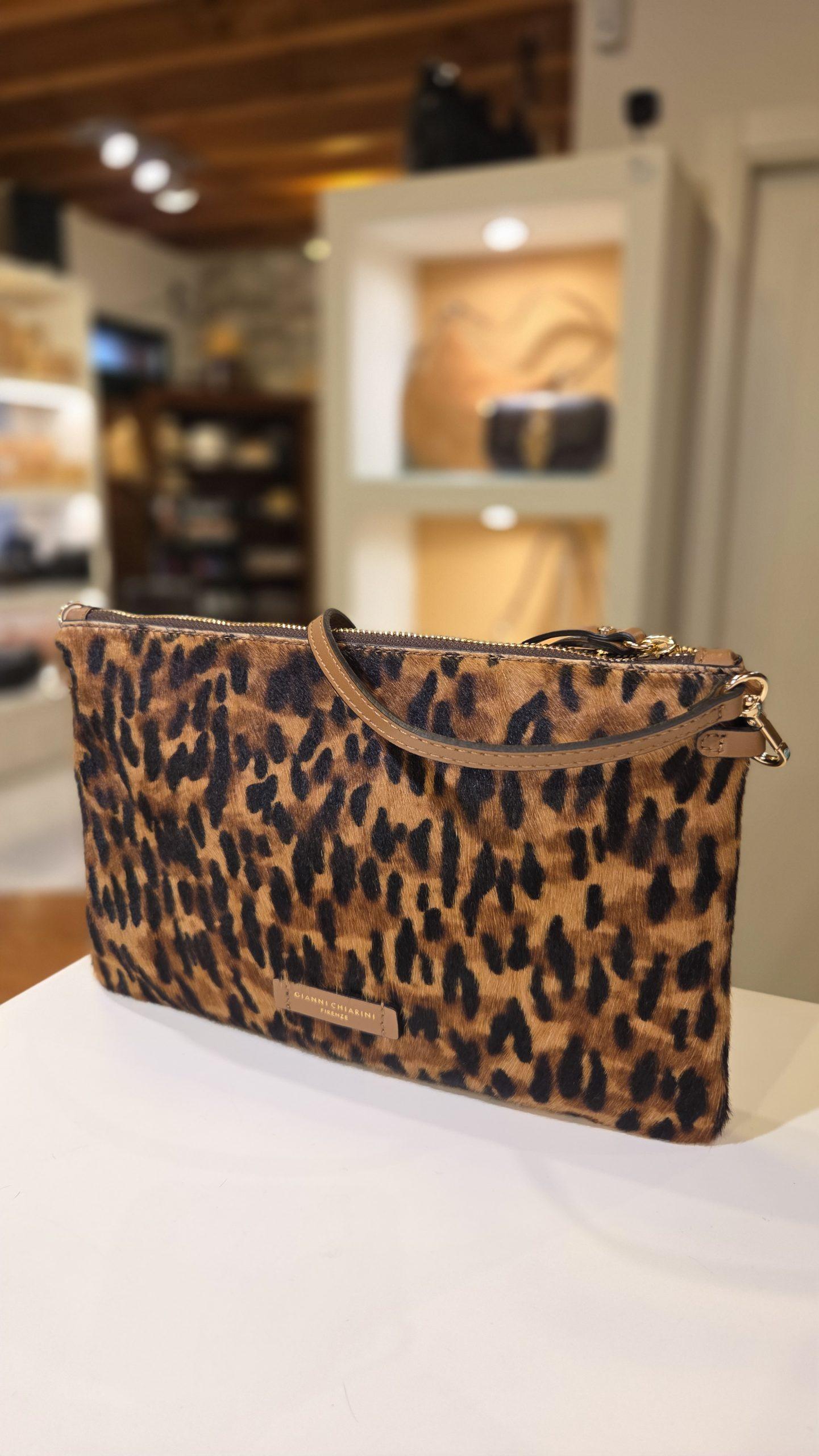 Da portare a mano o al polso la clutch Hermy Gianni Chiarini è realizzata in pregiata pelle effetto cavallino. Giovane e divertente è arricchita dal dettaglio della zip a contrasto ed è dotata di una sottile tracolla removibile. Ideale per accompagnare gli outfit più casual, ma anche per una serata elegante per impreziosire un total black.