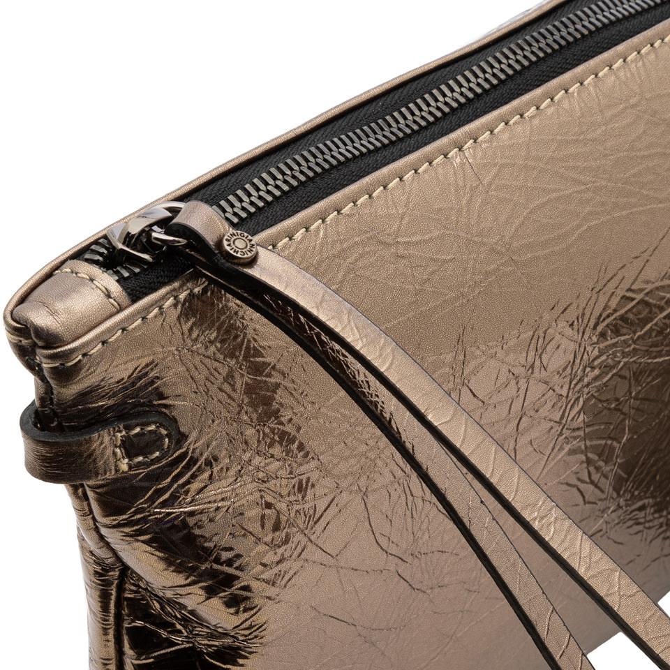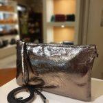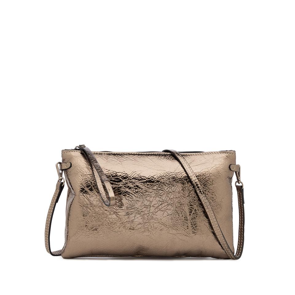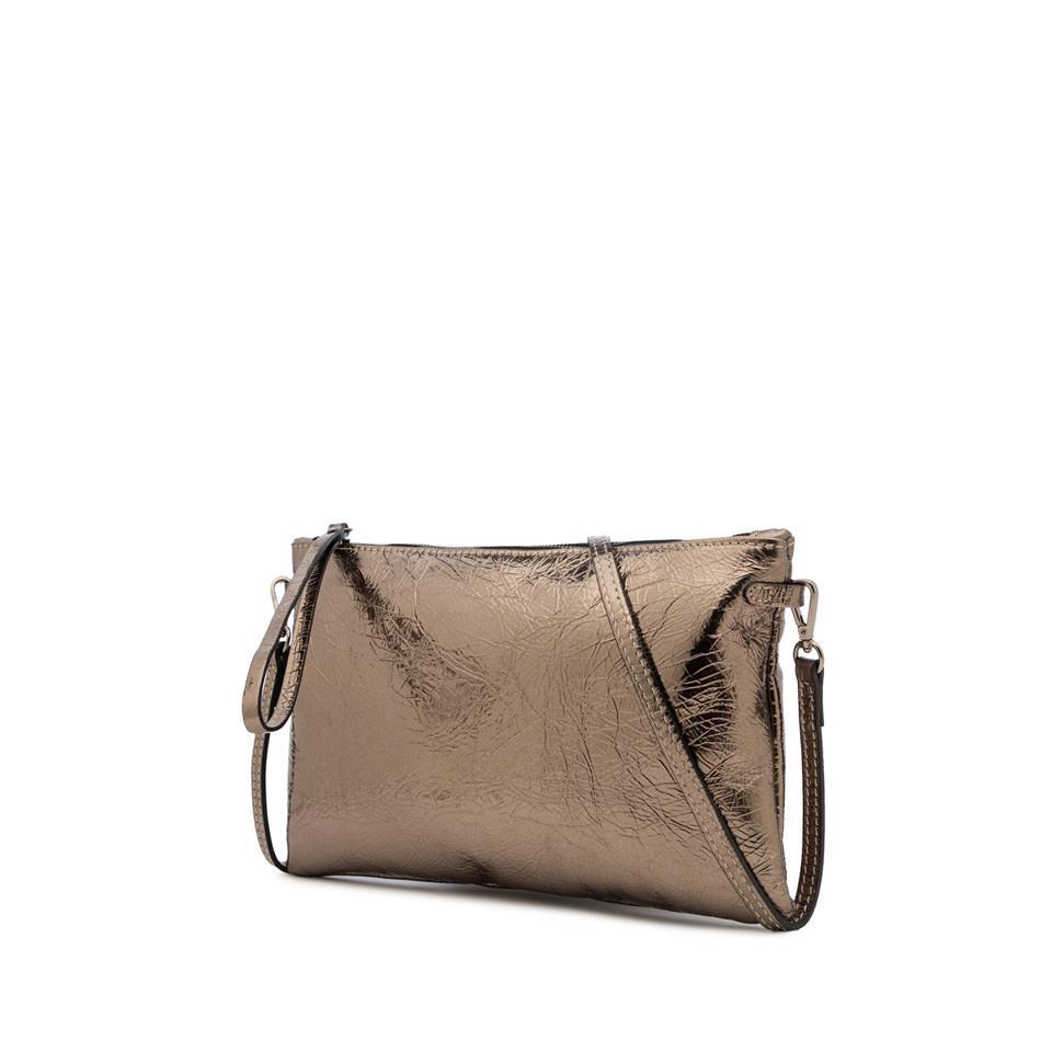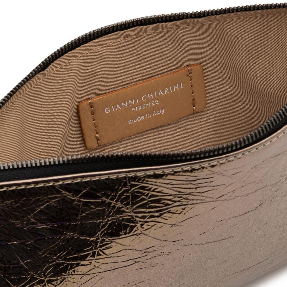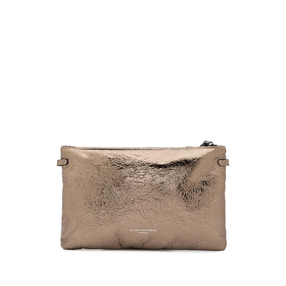 Da portare a mano o al polso la clutch Hermy Gianni Chiarini è realizzata in pregiata pelle laminata. Giovane e divertente è arricchita dal dettaglio della zip a contrasto ed è dotata di una sottile tracolla removibile. Da portare con gli outfit più casual ma anche per una serata elegante per impreziosire un total black.