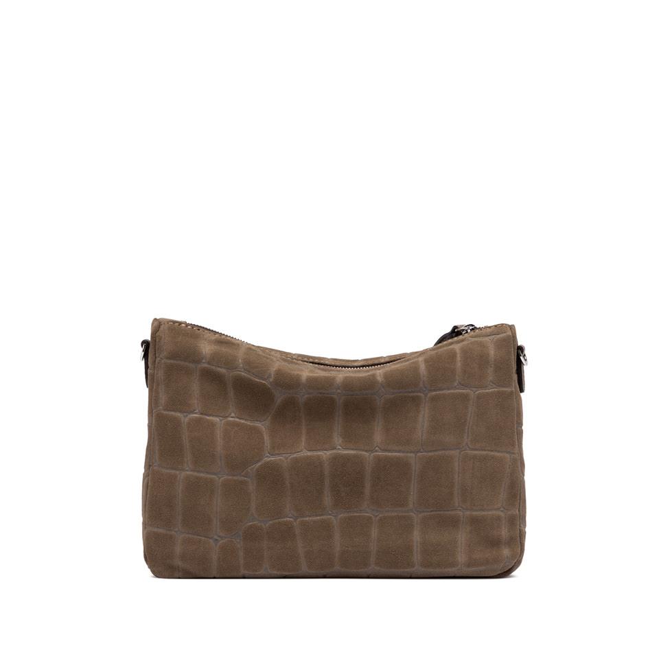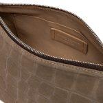 La borsa Nora Pouch di Gianni Chiarini Firenze è realizzata in pelle scamosciata effetto cocco. È caratterizzata da un elegante cinturino in pelle per portarla al polso e da una tracolla in pelle regolabile e removibile. La chiusura è pratica e sicura con zip.