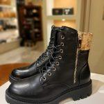Anfibi in eco pelle effetto nappa caratterizzati dal dettaglio superiore con stampa Geo Classic. Il look è impreziosito dalla zip laterale decorativa in oro chiaro, completata dal tiralampo logato 1C. Una zip sull’altro lato chiude il modello, ideale da abbinare a jeans e cardigan o per aggiungere un’attitude grintosa a gonne e abiti midi.