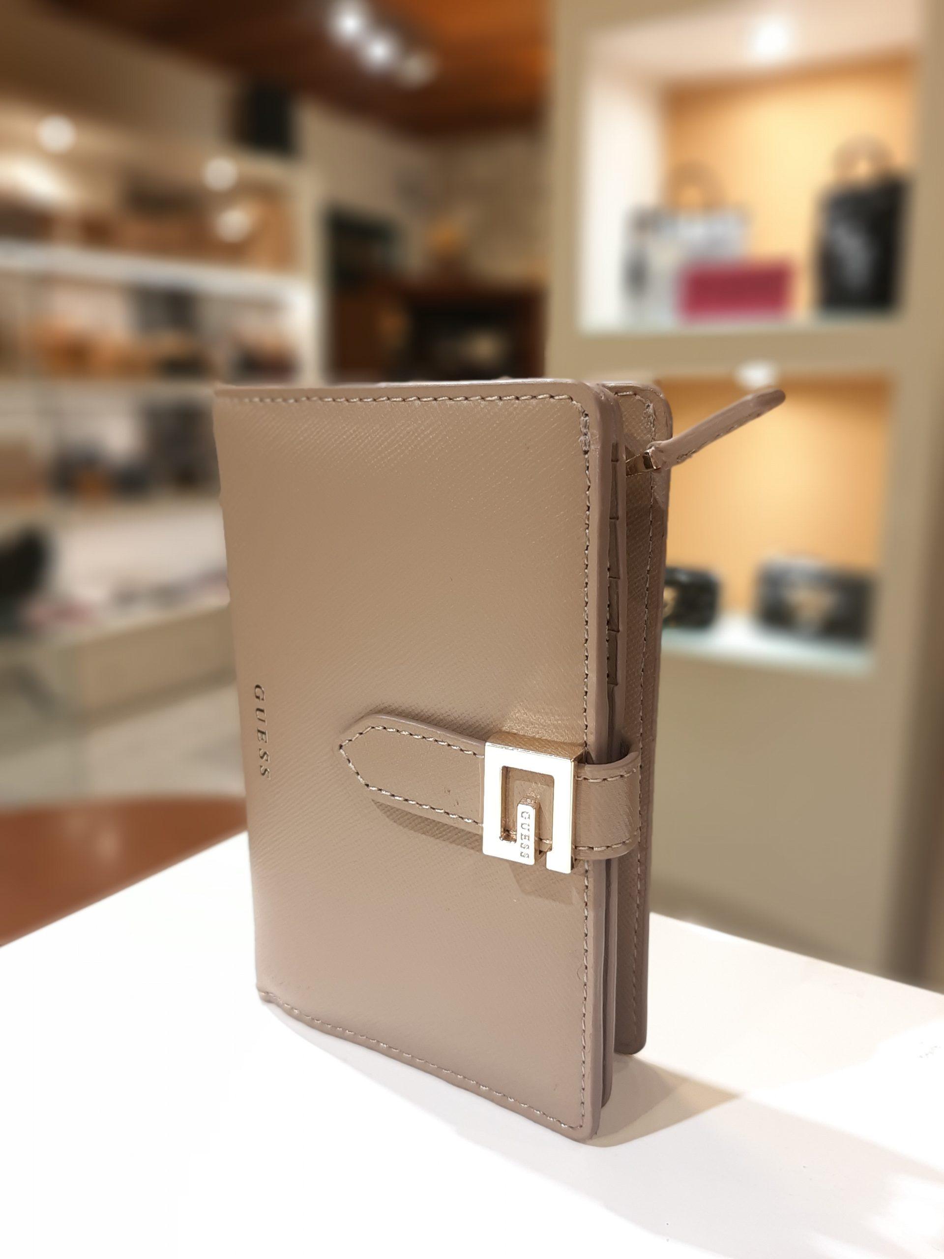 Il portafoglio in pelle da donna di Guess é caratterizzato da uno scomparto esterno per le monete con chiusura a zip e una sezione per banconote e carte di credito chiusura con bottoncino. Dettaglio logo “G” nella parte frontale del portafoglio.