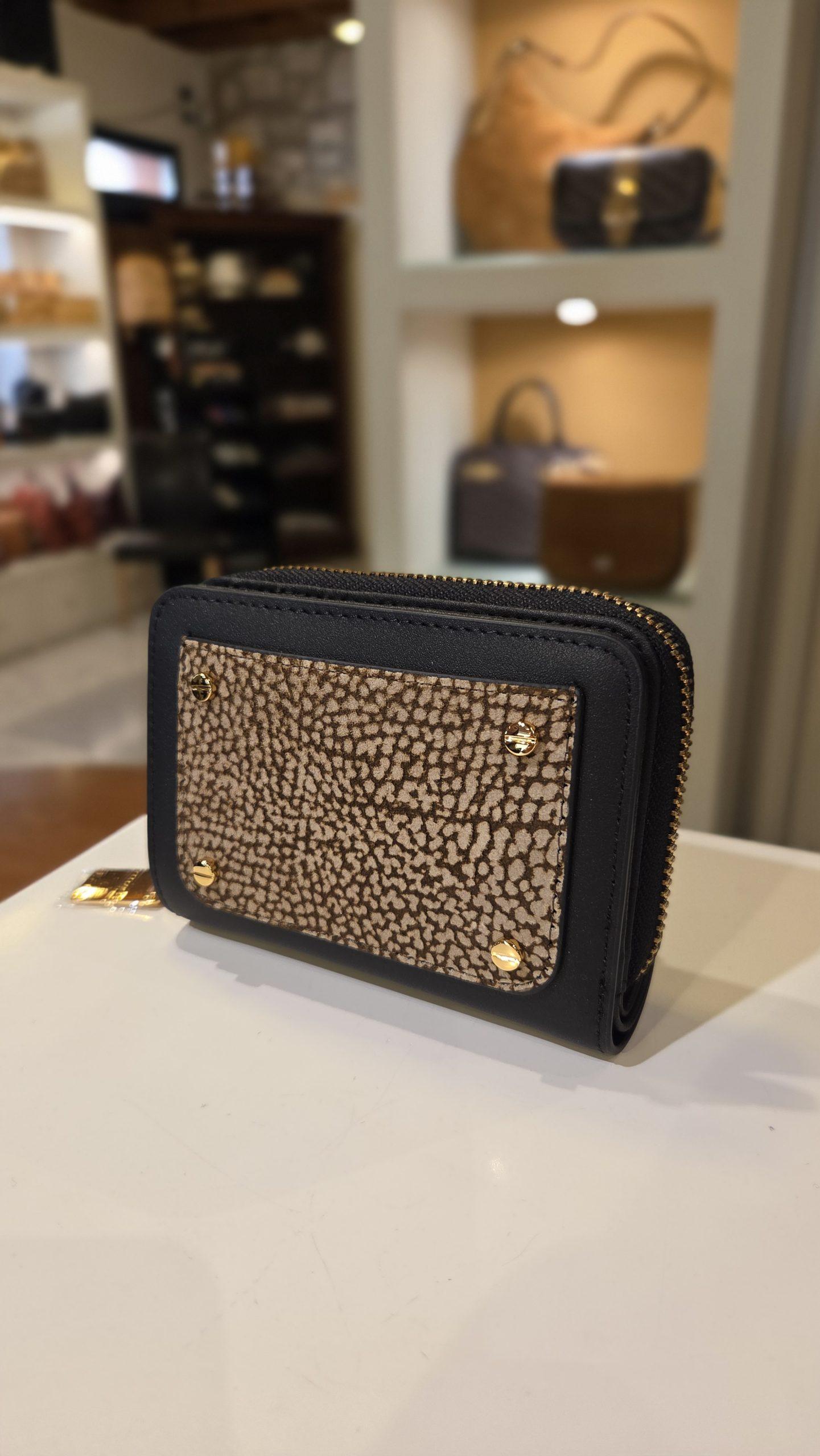 Portafoglio small zip around in pelle e camoscio BORBONESE 91020032433480 in colore BLACK/OP NATURAL