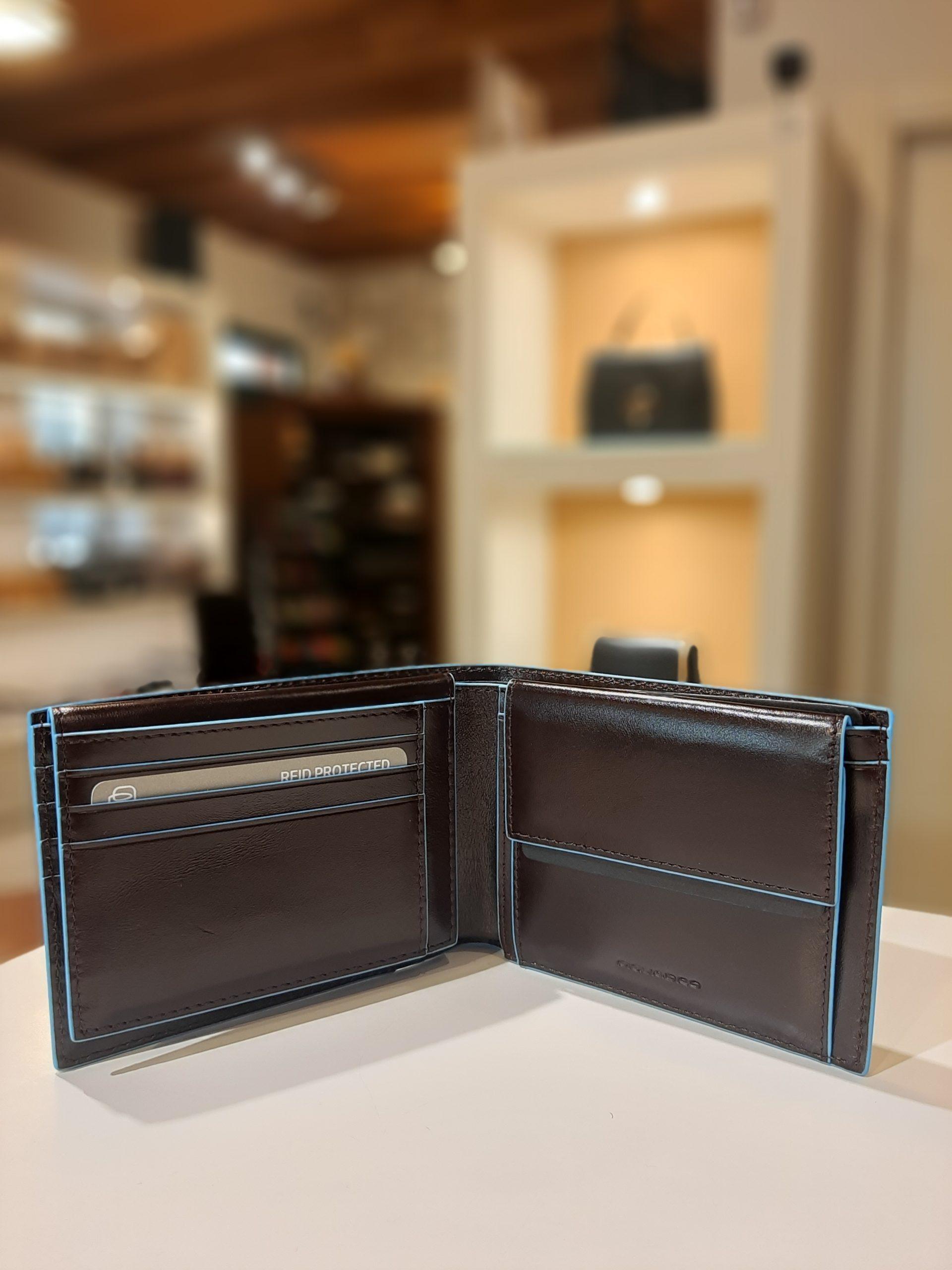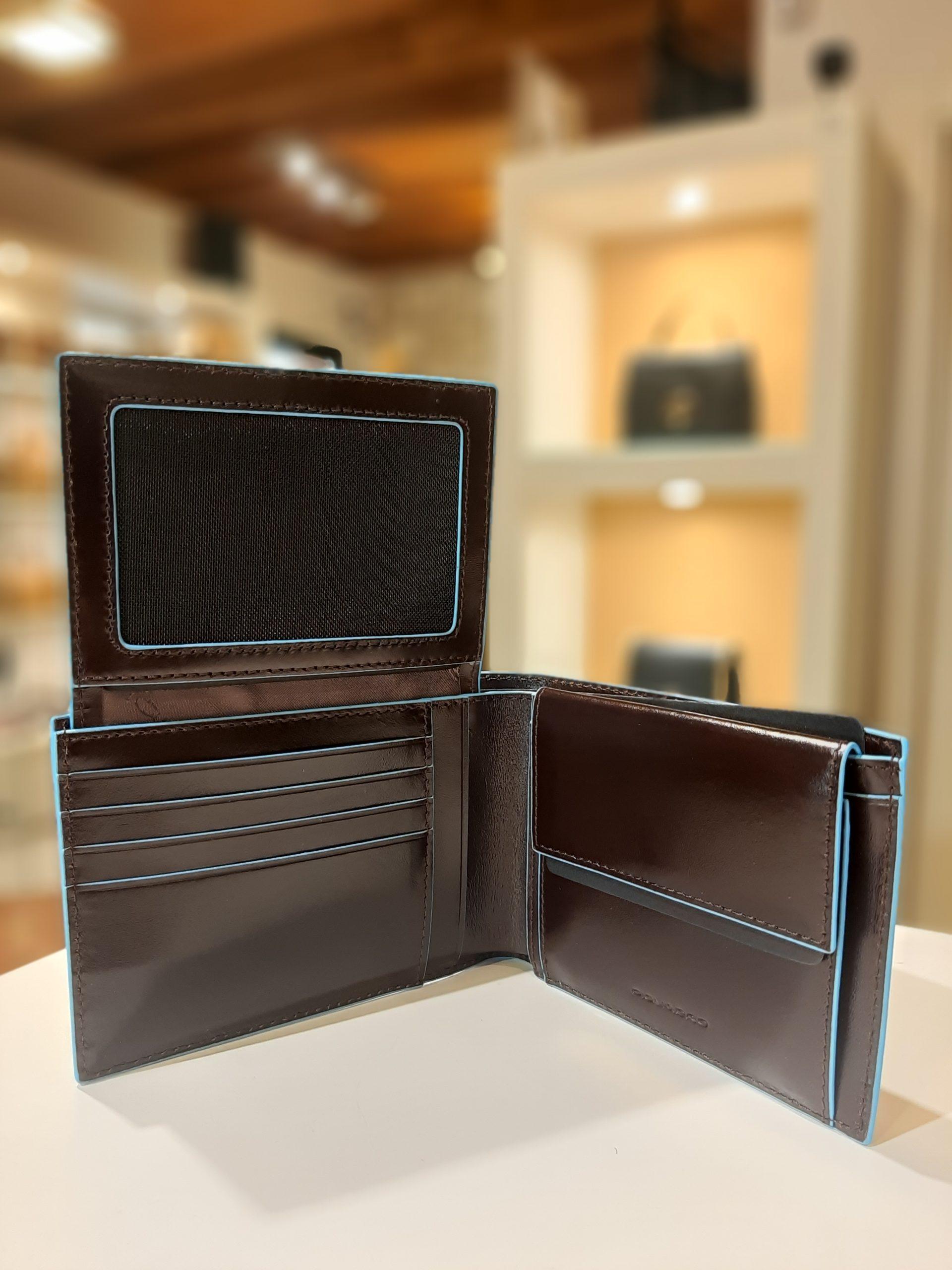 Questo portafoglio da uomo appartiene alla linea iconica di Piquadro “BLUE SQUARE”, caratterizzata da un prodotto interamente in pelle i cui bordi sono colorati di azzurro. Questo portafoglio é caratterizzato da uno spazio porta monete, scomparti porta tessere, porta documenti e porta banconote.
